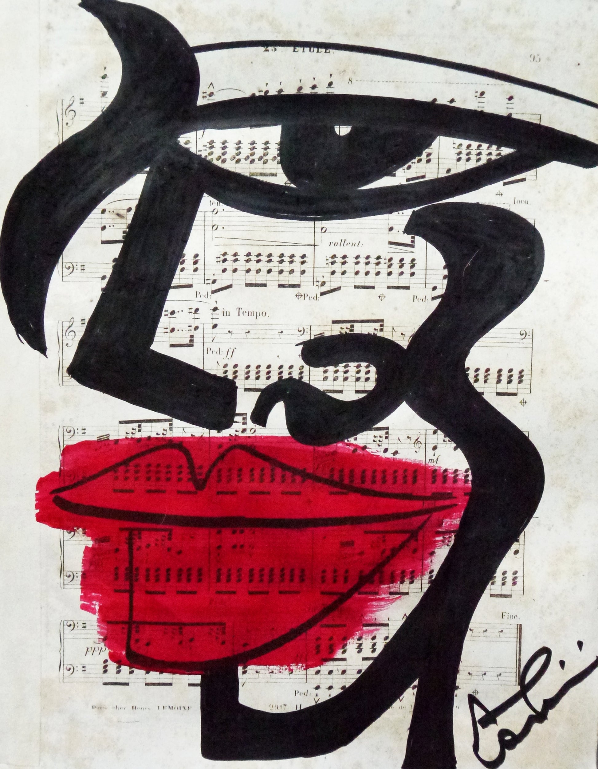 marker and acrylic on music sheet, 32x23cm